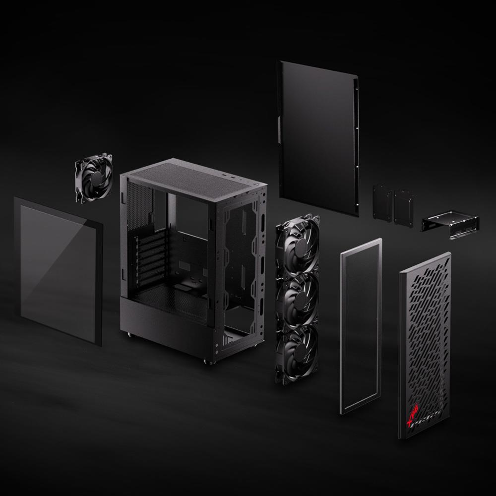 XPG VALOR AIR sports a sleek, clean look with a streamlined design that enhances cool air from outside to be drawn in via x3 pre-installed 120mm fans at the front, and a 120mm fan at the rear to exhaust the heat.