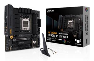 ASUS TUF GAMING B650-PLUS takes all the essential elements of the latest AMD Ryzen 7000-series processors and combines them with game-ready features and proven durability. Engineered with military-grade components, an upgraded power solution and a comprehensive cooling system, this motherboard goes beyond expectations with rock-solid and stable performance for marathon gaming. TUF GAMING motherboards also undergo rigorous endurance testing to ensure that they can handle conditions where others may fail. Aesthetically, this model incorporates rugged off-black and geometric design elements to reflect the dependability and stability that defines the TUF GAMING series.