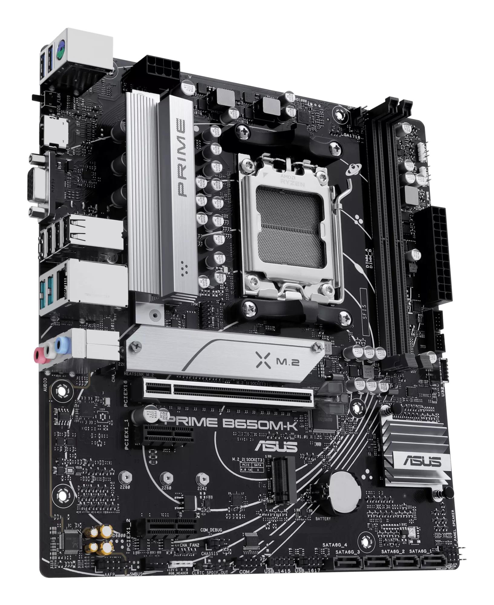 ASUS Prime series motherboards are expertly engineered to unleash the full potential of AMD Ryzen 7000-series processors. Boasting a robust power design, comprehensive cooling solutions and intelligent tuning options, PRIME B650M-K provides users and PC DIY builders with a range of performance optimizations via intuitive software and firmware features.