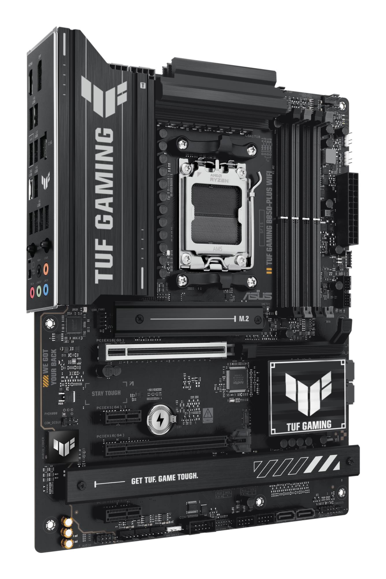 ASUS TUF GAMING B850-PLUS WIFI takes all the essential elements of the latest AMD Ryzen™ processors and combines them with game-ready features and proven durability. Engineered with military-grade components, an upgraded power solution and a comprehensive cooling system, this motherboard goes beyond expectations with rock-solid and stable performance for marathon gaming. TUF GAMING motherboards also undergo rigorous endurance testing to ensure that they can handle conditions where others may fail. This platform delivers the power and connectivity that advanced AI PC applications demand.