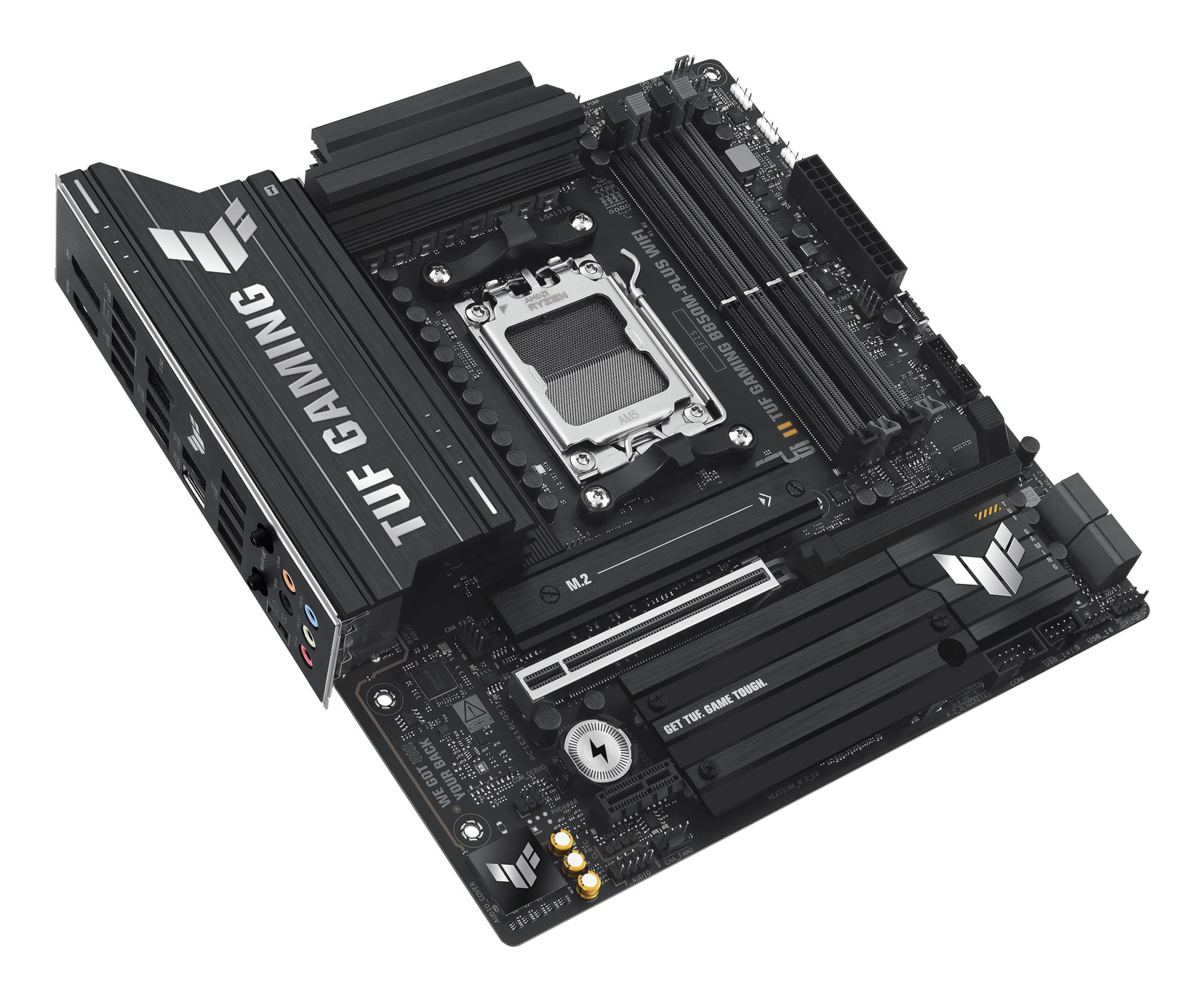 ASUS TUF GAMING B850M-PLUS WIFI takes all the essential elements of the latest AMD Ryzen™ processors and combines them with game-ready features and proven durability. Engineered with military-grade components, an upgraded power solution and a comprehensive cooling system, this motherboard goes beyond expectations with rock-solid and stable performance for marathon gaming. TUF GAMING motherboards also undergo rigorous endurance testing to ensure that they can handle conditions where others may fail. This platform delivers the power and connectivity that advanced AI PC applications demand.