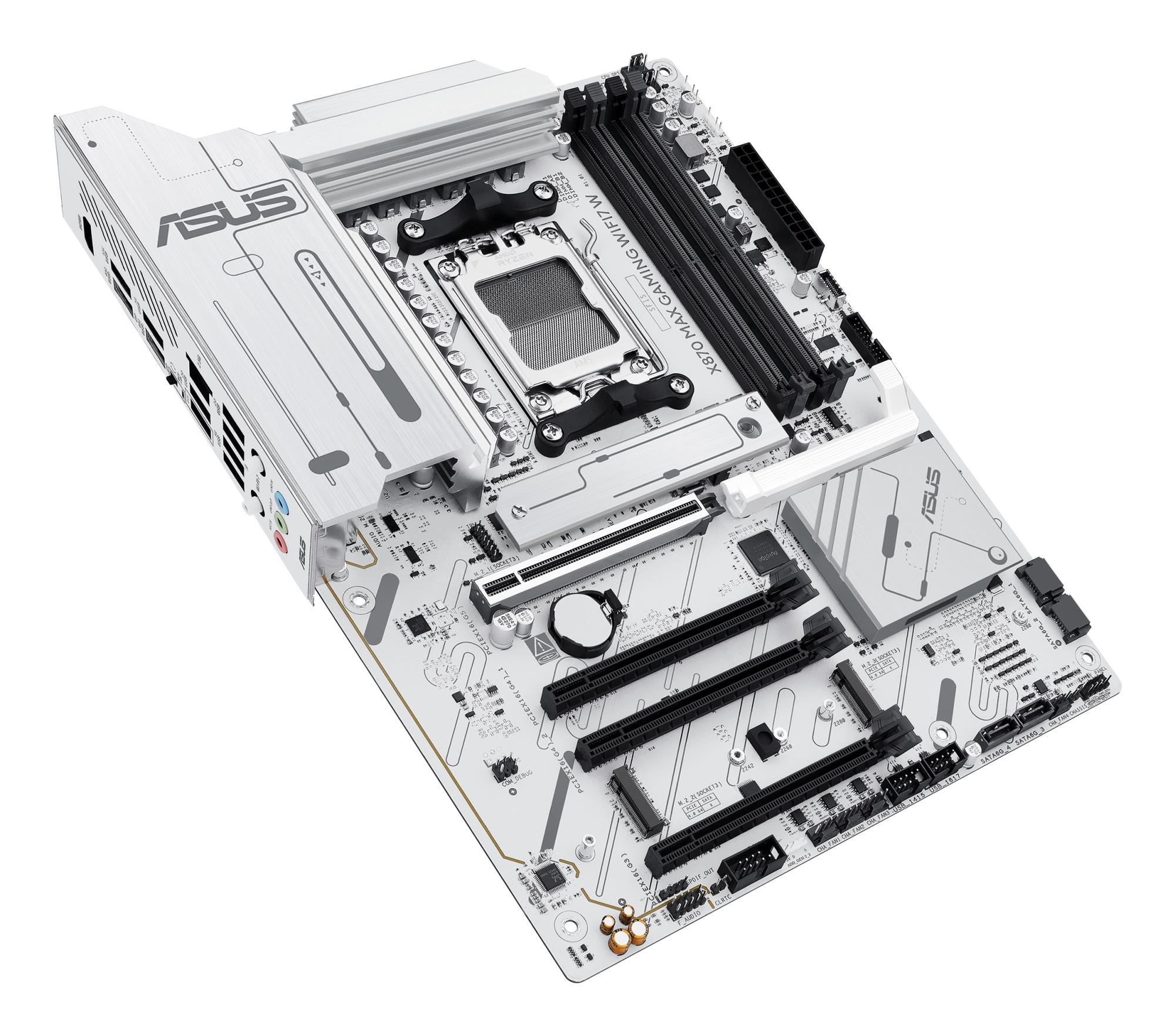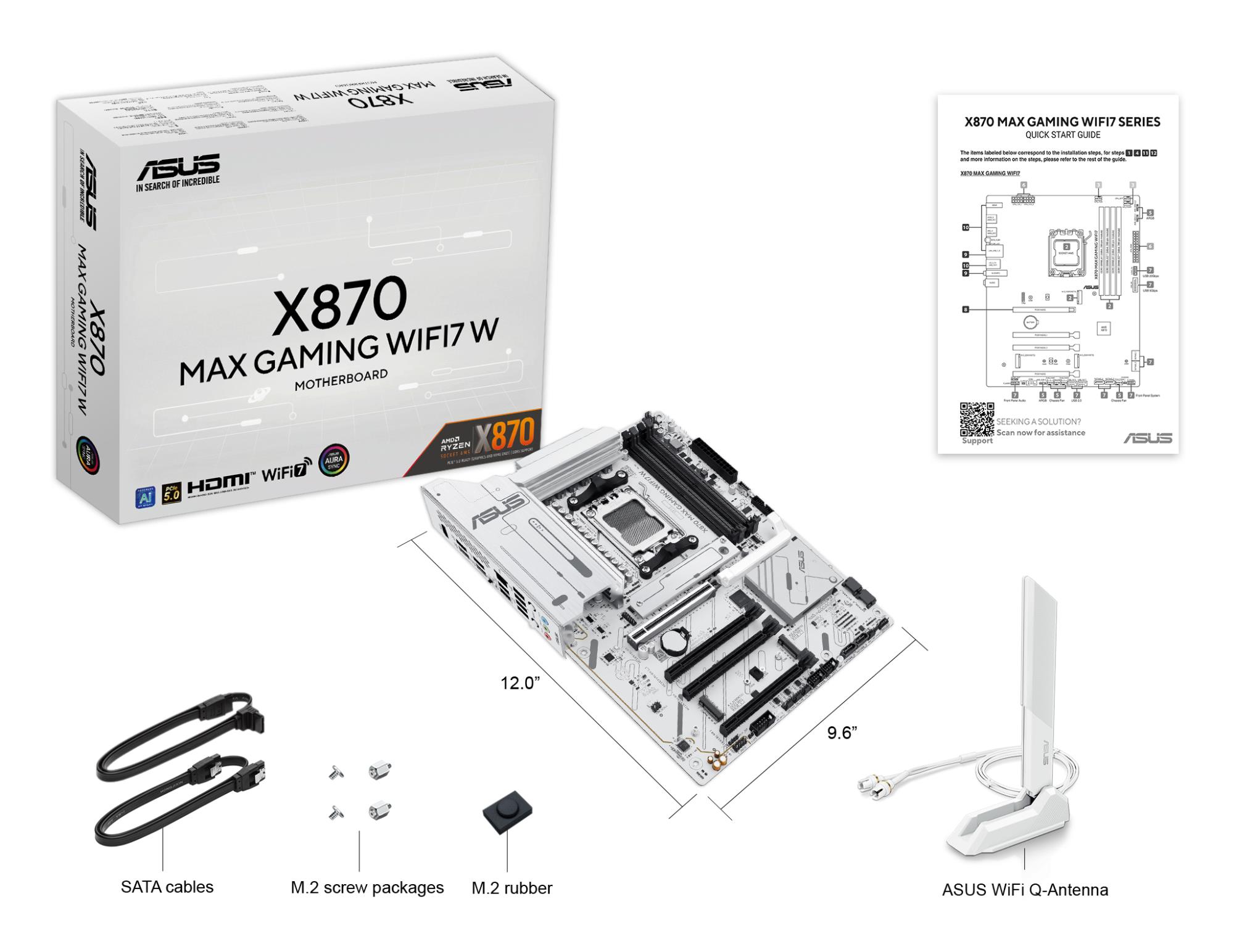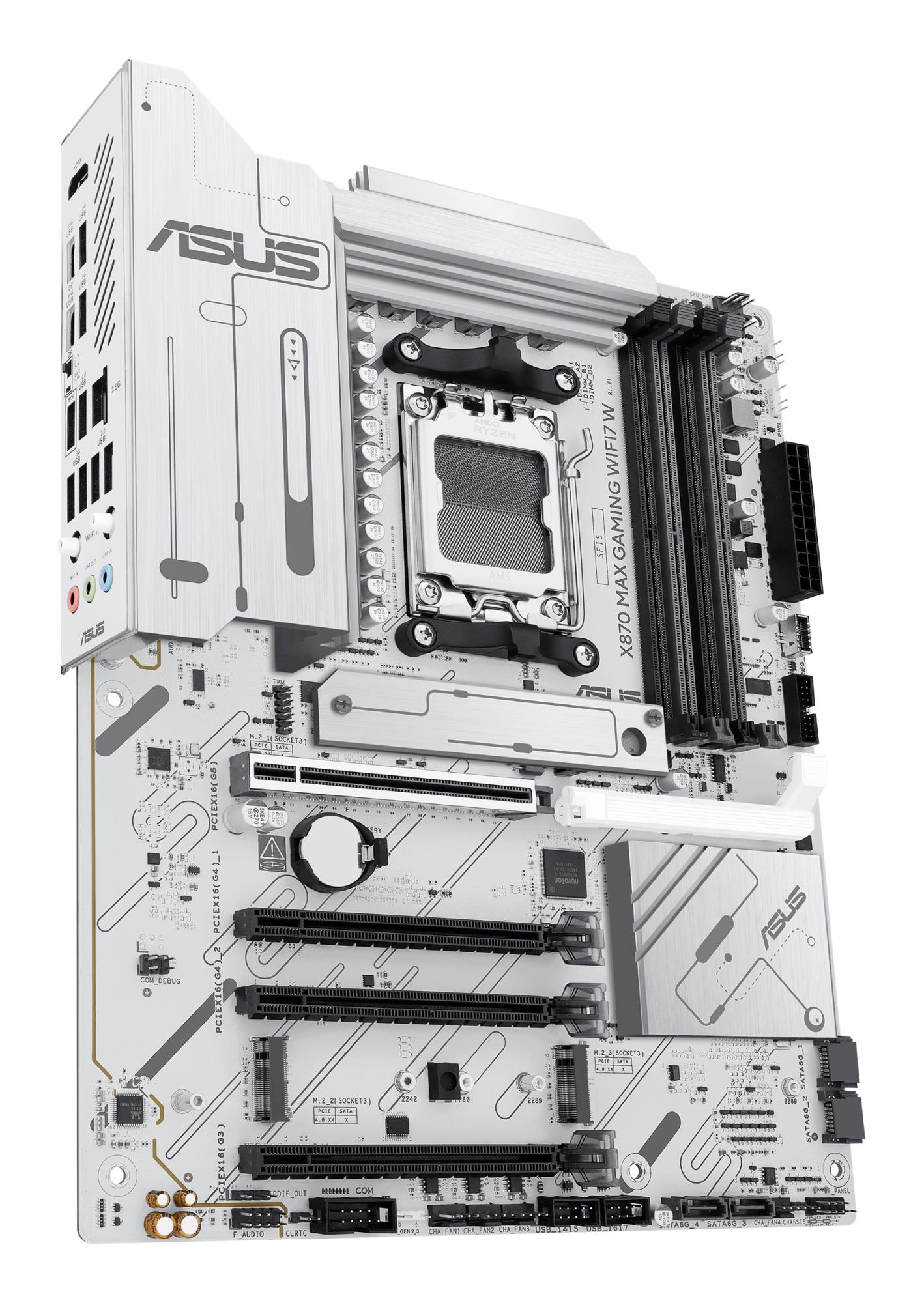 ASUS X870 series motherboards are expertly engineered to unleash the full potential of AMD Ryzen™ 9000 series processors. Boasting a robust power design, comprehensive cooling solutions and intelligent tuning options, the X870 MAX GAMING WIFI7 W motherboard provides users and PC DIY builders with a range of performance optimizations via intuitive software and firmware features. It’s designed to be Advanced AI PC-ready, offering the power and connectivity needed for demanding AI applications.