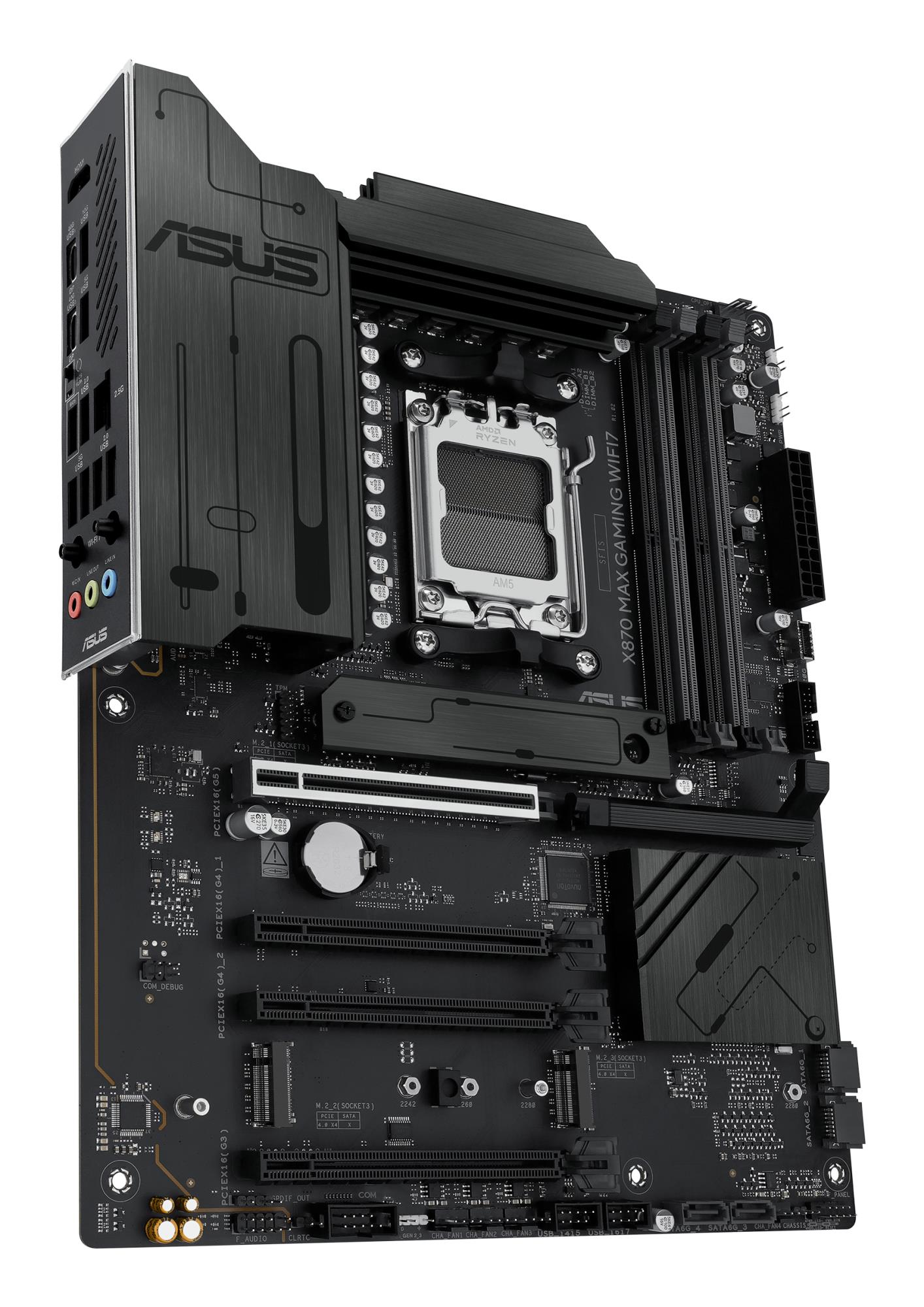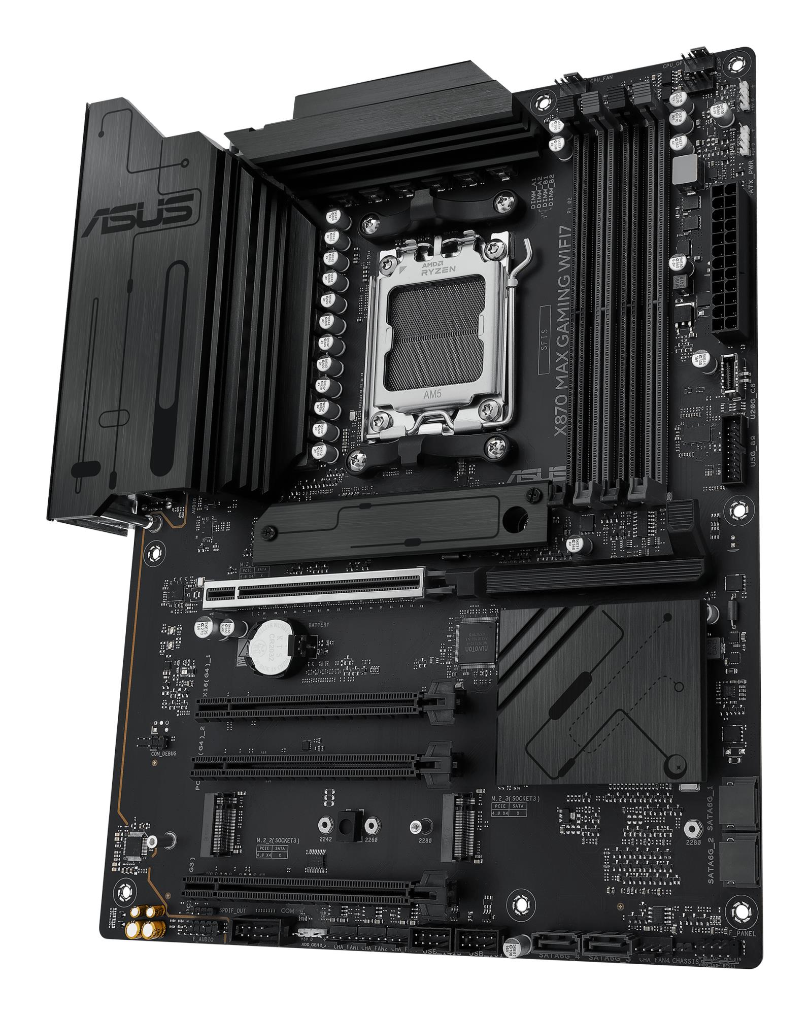 ASUS X870 series motherboards are expertly engineered to unleash the full potential of AMD Ryzen™ 9000 series processors. Boasting a robust power design, comprehensive cooling solutions and intelligent tuning options, the X870 MAX GAMING WIFI7 motherboard provides users and PC DIY builders with a range of performance optimizations via intuitive software and firmware features. It’s designed to be Advanced AI PC-ready, offering the power and connectivity needed for demanding AI applications.
