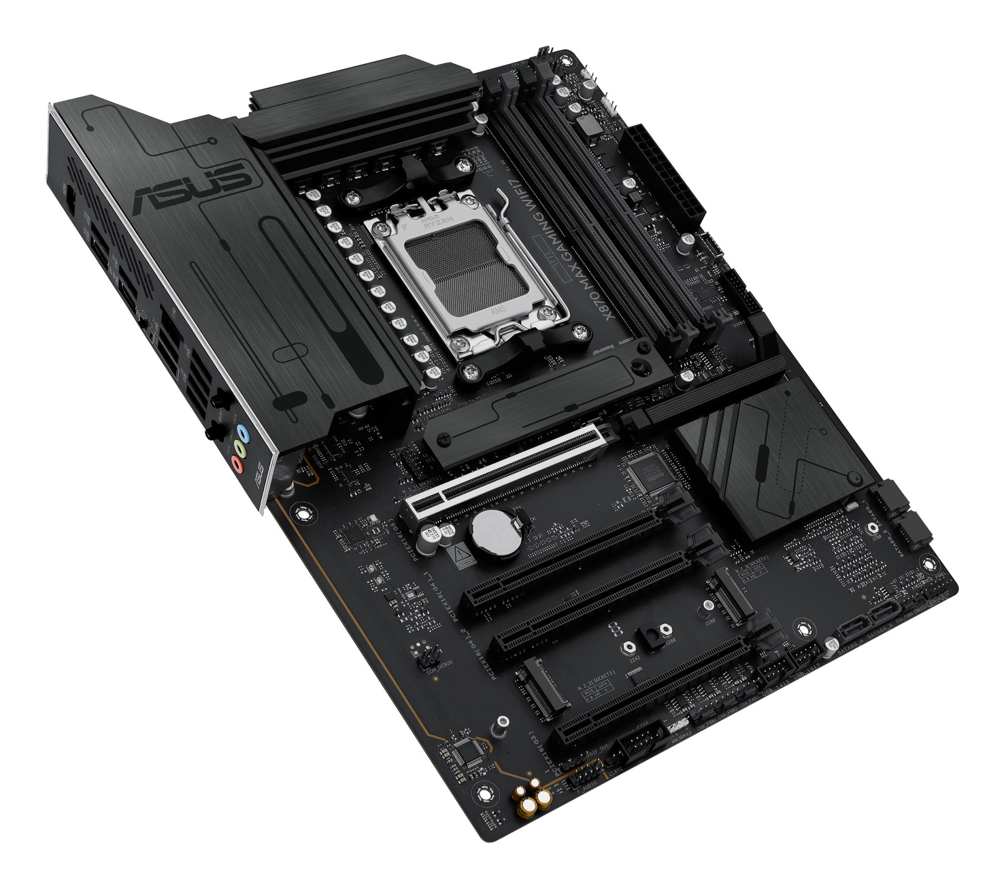 ASUS AMD X870 SAM5 ATX Memory DDR5 Memory slots 4 1x PCI-Express 3.0 16x 2x PCI-Express 4.0 16x 1x PCI-Express 5.0 16x 3x M.2 1x HDMI 4x USB 2.0 4x USB 3.2 2x USB-C 1x RJ45 3x Audio port X870MAXWIFI7