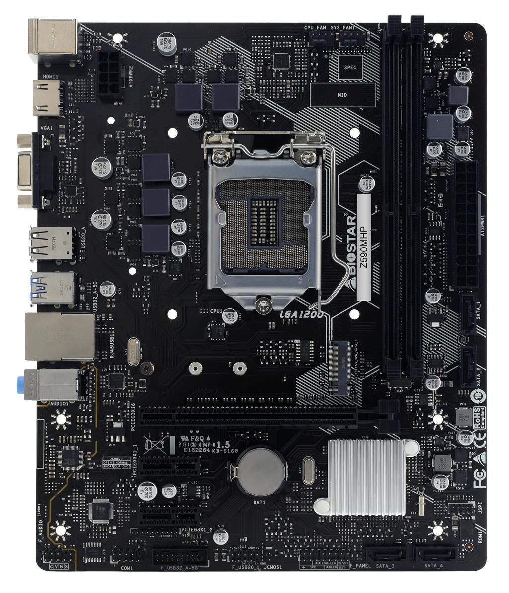 BIOSTAR Intel Z590 Express LGA1200 Micro-ATX Memory DDR4 Memory slots 2 2x PCI-Express 3.0 1x 1x PCI-Express 4.0 16x 1x M.2 1x15pin D-sub 1x HDMI 4x USB 2.0 2x USB 3.2 2x PS/2 1x RJ45 3x Audio port Z590MHP
