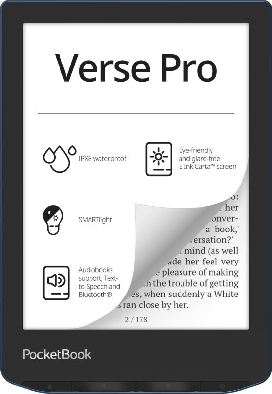 Smartphones & Tablets / Tablets & E-Readers / E-Readers & Accessories / E-Reader POCKETBOOK Verse Pro 6″ 1072×1448 1x USB-C Wireless LAN Bluetooth Azure PB634-A-WW