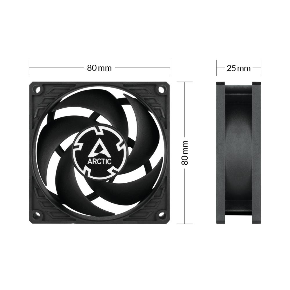 The P8 Max is a powerful fan with 500 to 5000 rpm.The fan delivers a static pressure of 5.3 mmH2O and generates an airflow of up to 40 cfm. It offers precise control of the fan speed via pulse width modulation (PWM) and is extremely efficient at 0.19 A. The P8 Max is ideal for 2U server racks, which often require a high airflow to effectively dissipate heat. In addition, it has a 0 dB mode for silent operation in IDLE.