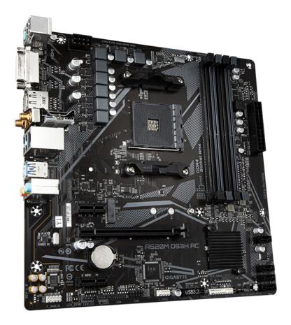 GIGABYTE A520M DS3H AC Motherboard – AMD Ryzen 5000 Series CPUs, 5+3 Phases VRM, up to 4733MHz DDR5 (OC), 1xPCIe 3.0 M.2, GbE LAN, WIFI 5, USB 3.2 Gen 1. Processor manufacturer: AMD, Processor socket: Socket AM4, Compatible processor series: AMD Ryzen 3000 Series, AMD Ryzen Threadripper 3000 Series, AMD Ryzen Threadripper PRO 3000 WX-Series. Supported memory types: DDR4-SDRAM, Maximum internal memory: 128 GB, Memory slots type: DIMM. Supported storage drive interfaces: M.2, SATA III, Supported storage drive types: HDD & SSD, RAID levels: 0, 1, 10. Maximum resolution: 5120 x 2880 pixels. Ethernet interface type: Gigabit Ethernet, Top Wi-Fi standard: Wi-Fi 5 (802.11ac), Wi-Fi standards: 802.11a, 802.11b, 802.11g, Wi-Fi 4 (802.11n), Wi-Fi 5 (802.11ac)