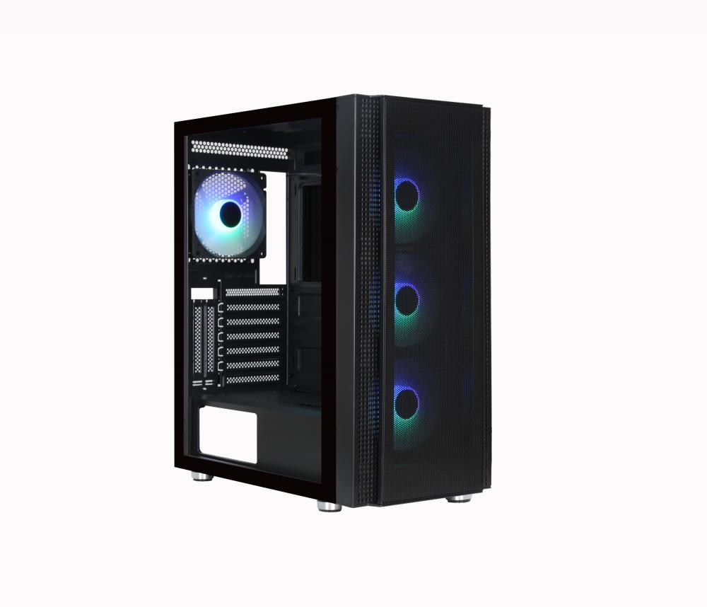 | Ventilation fan(s) | 1x Primary 120mm ARGB, SATA+female connector, cable length 500mm, with SYNC, AURA, 3x Secondary 120mm ARGB, female+male connector, cable length 500mm |