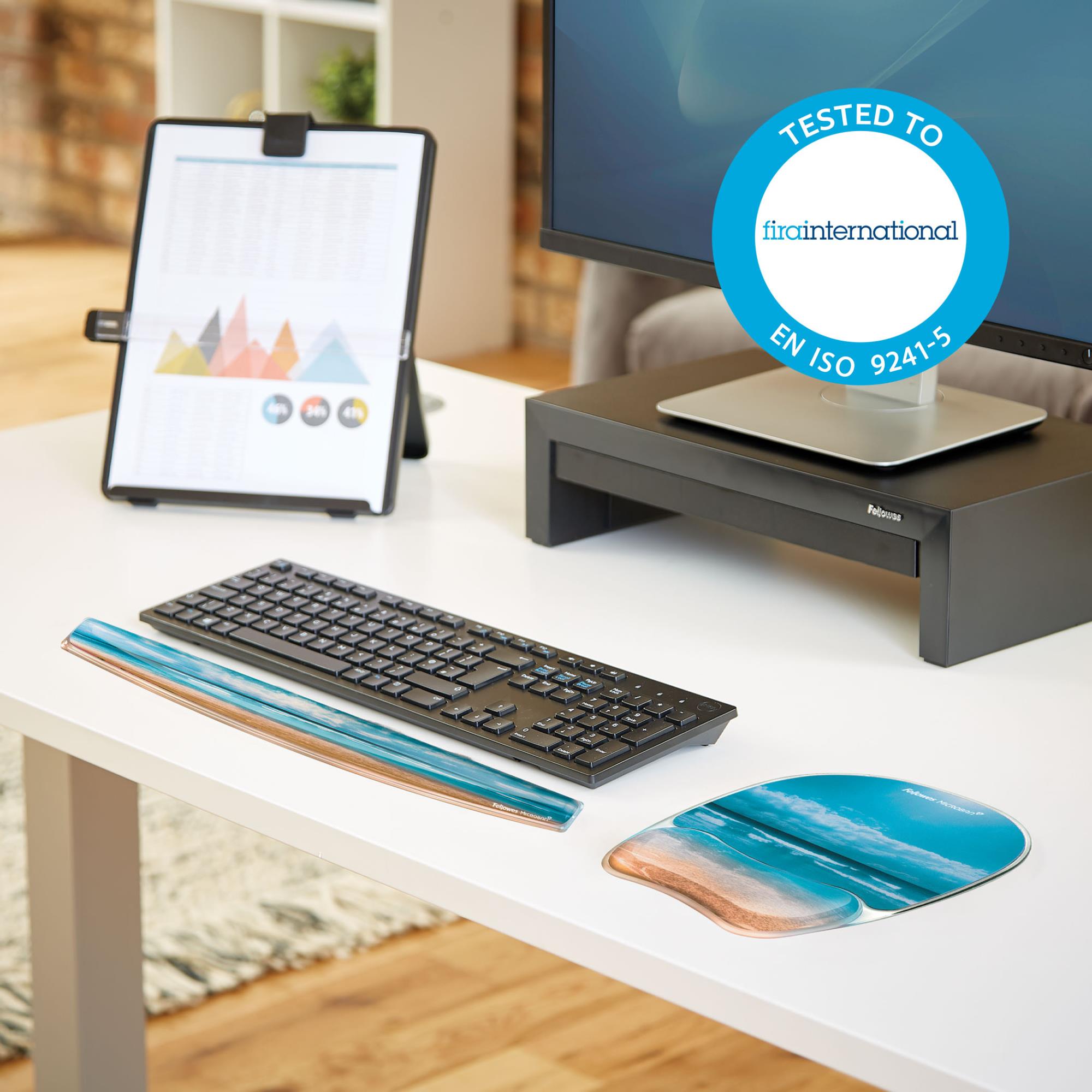 | Summary | Fellowes Keyboard Wrist Rest – Photo Gel Wrist Rest with Non Skid Rubber Base & Antibacterial Protection – Ergonomic Wrist Support for Computer, Laptop, Home Office Use – Sandy Beach. Product colour: Multicolour. Width: 472 mm, Depth: 59 mm, Height: 19 mm |