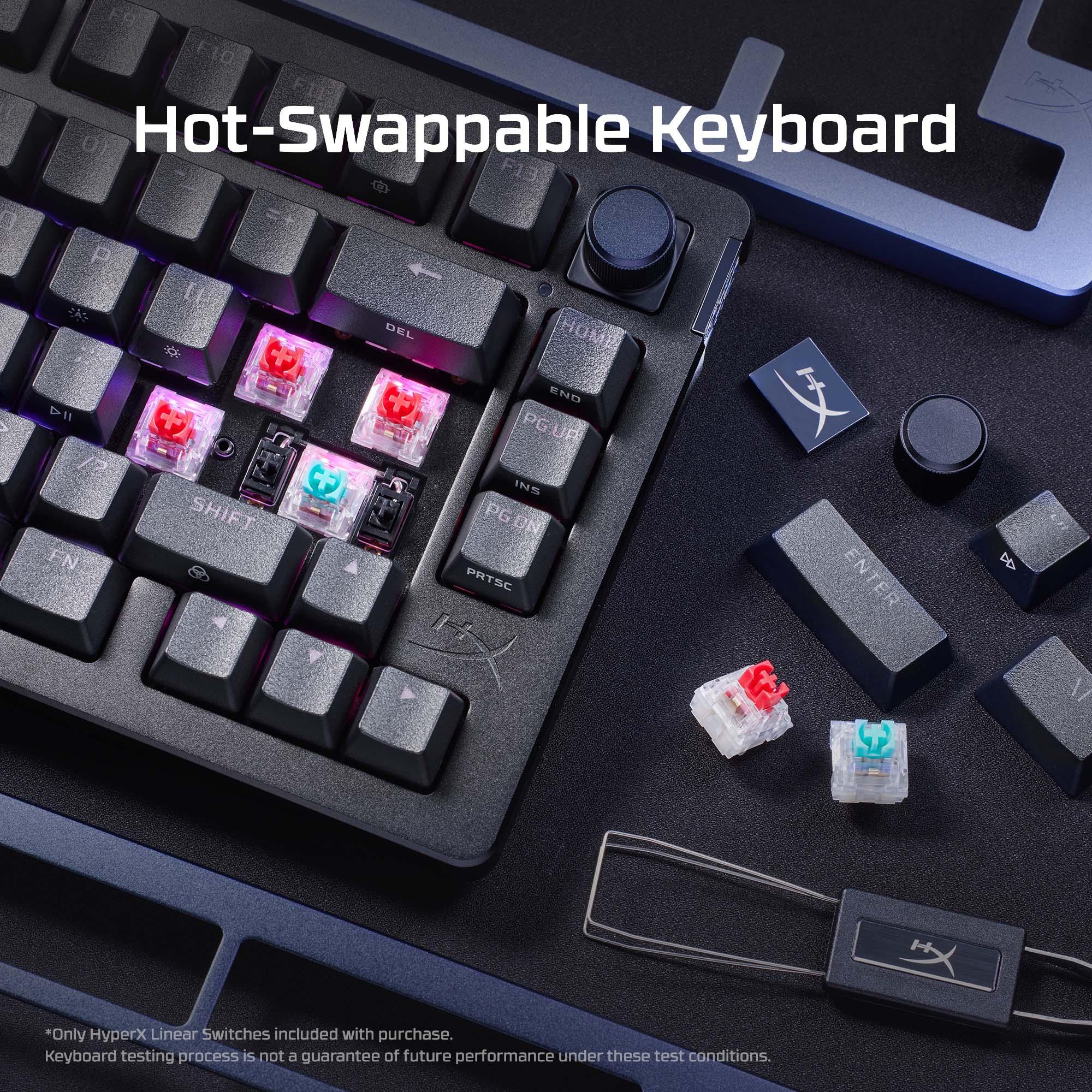 - HyperX Linear Switches3 have a half-wall POM stem for better stability of the preinstalled HyperX PBT Keycaps. They’re also factory-lubed for smooth actuation and rated for up to 80 million keypresses[1].