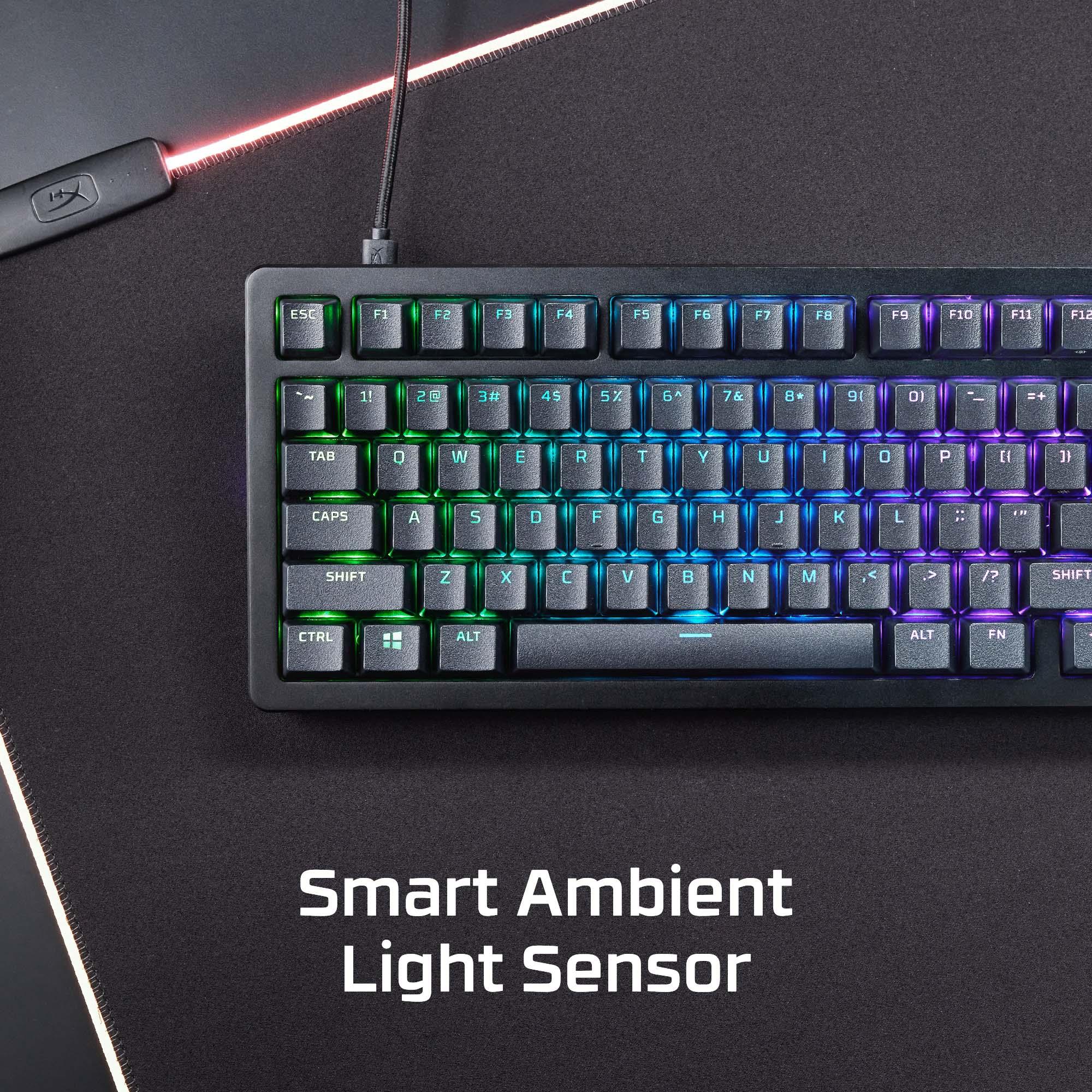 As the world’s most customizable toolless mechanical gaming keyboard on the market5, the HyperX Alloy Rise 75 takes personalization to the next level. Not only can you hot-swap in key switches, but also magnetic top plates, badges, and more. All that customization is built onto its compact, solid frame and ultra-responsive 8k polling rate, giving you rapid keypress detection and more room. Out of the box, this keyboard features pre-lubed HyperX Linear Switches rated for up to 80 million keypresses1 as well as pre-installed HyperX PBT Keycaps. The 75% form factor is a great balance between compactness and function, providing dedicated arrow keys, navigation keys, and F keys. You’ll also get an upgraded RGB experience courtesy of the ambient light sensor that auto-adjusts the brightness, 10 keyboard profiles saved directly to the keyboard, and powerful customization via HyperX NGENUITY Software. Get one step closer to your endgame with the HyperX Alloy Rise 75.