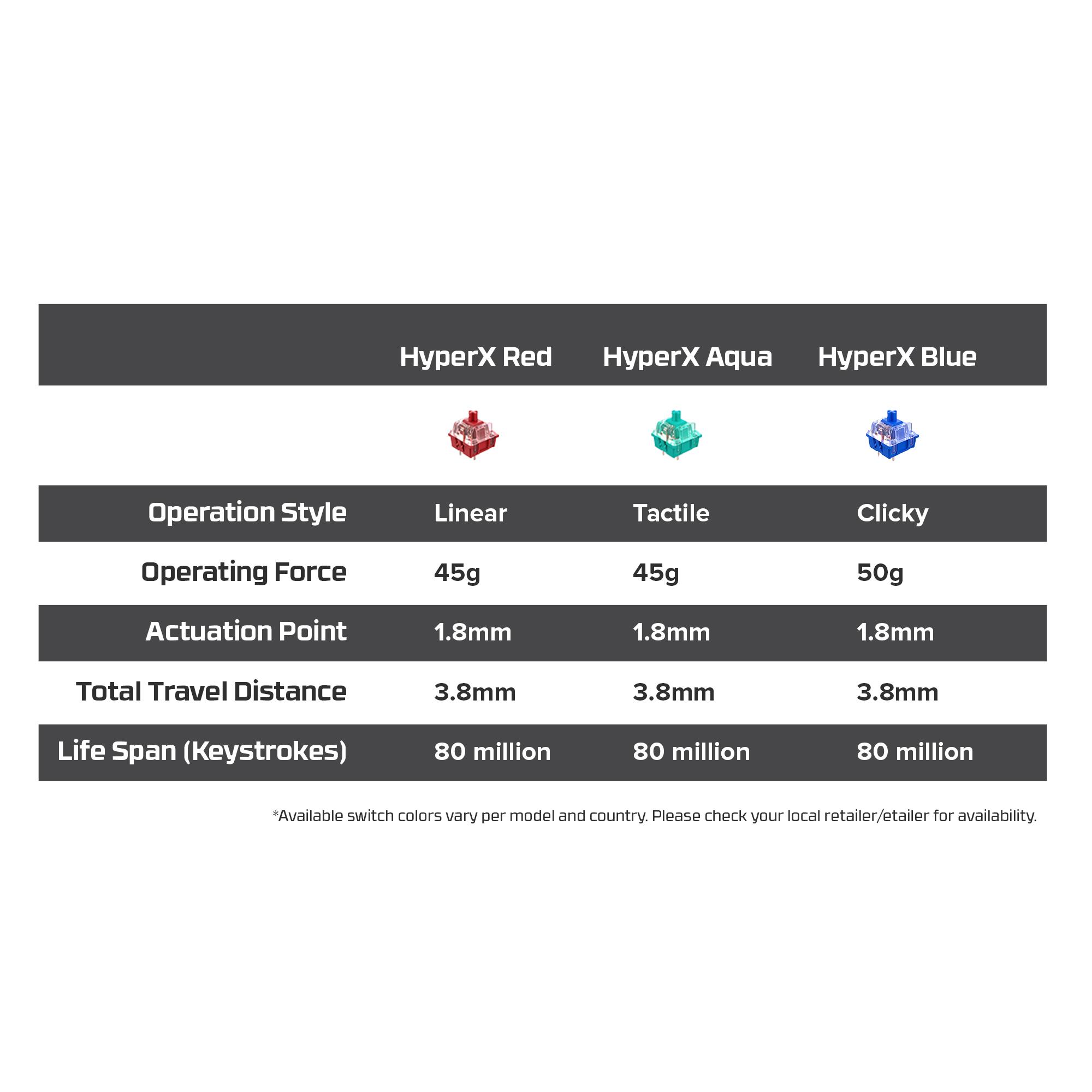 - HyperX mechanical switches feature an exposed LED for brighter, more luminous RGB lighting.
