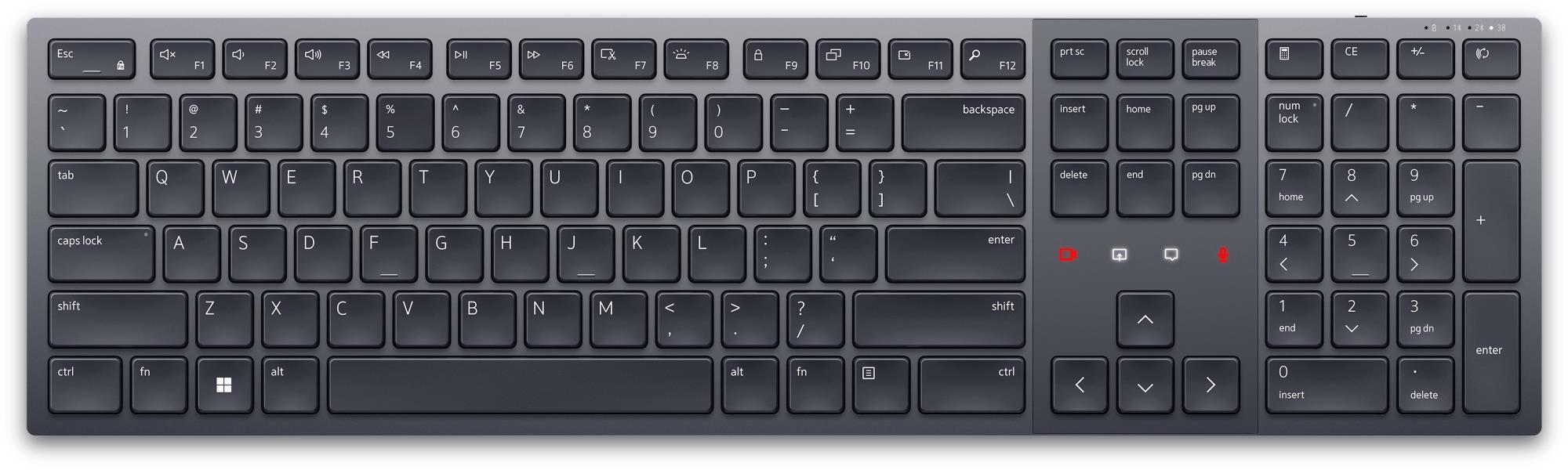 | Summary | DELL Pro Premium Collaboration Keyboard – KB900 – Pan-Nordic (QWERTY). Keyboard form factor: Full-size (100%), Connectivity technology: Wireless, Device interface: RF Wireless + Bluetooth, Keyboard key switch: Scissor key switch, Keyboard layout: QWERTY, Recommended usage: Office. Product colour: Graphite |