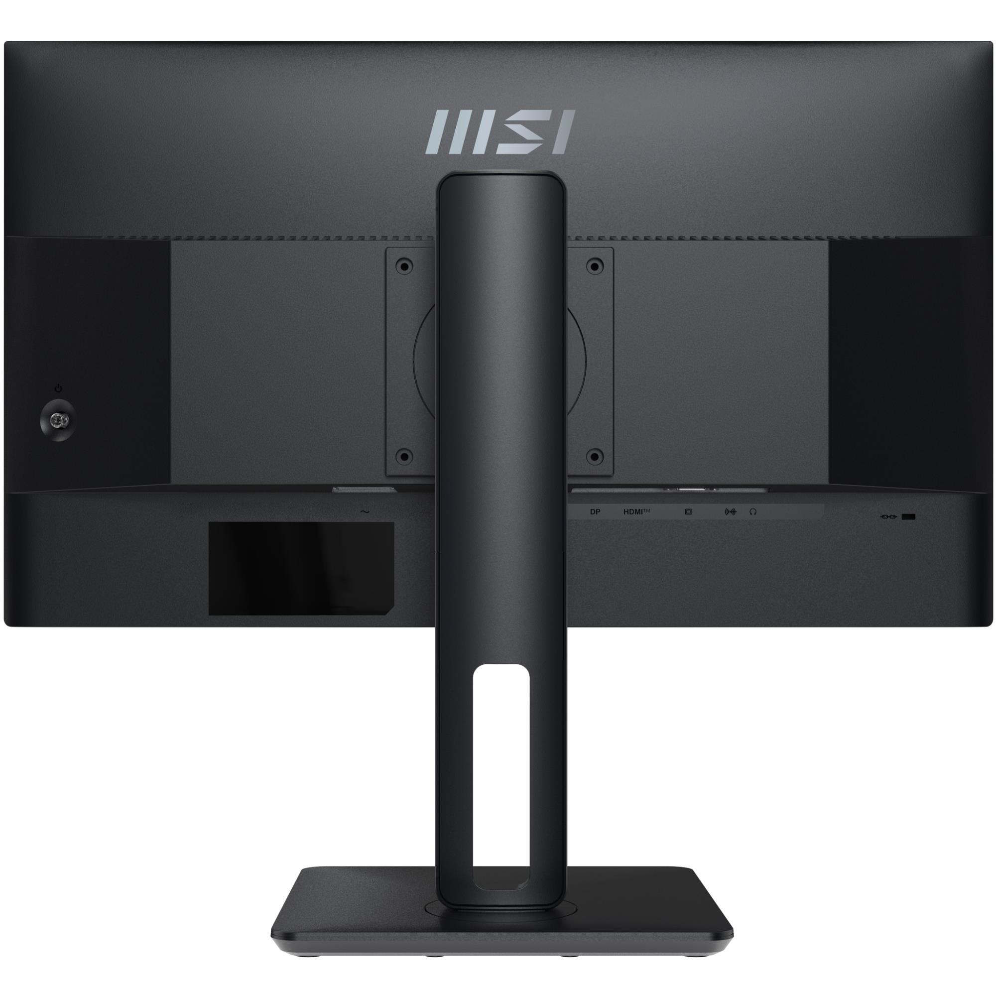 MSI Pro MP245PG 24 Inch Monitor, FHD (1920 x 1080), 100Hz, IPS, 1ms, 1x HDMI 1.4b, 1x DP 1.2a output, 1x D-Sub(VGA), Built-in Speakers, Anti-Glare, Anti-Flicker, Less Blue light, TÜV Certified, VESA, Kensington, 4-way adjustable stand, Black. Display diagonal: 60.5 cm (23.8"), Display resolution: 1920 x 1080 pixels, HD type: Full HD, Display technology: LCD, Response time: 4 ms, Native aspect ratio: 16:9, Viewing angle, horizontal: 178°, Viewing angle, vertical: 178°. Built-in speaker(s). VESA mounting, Height adjustment. Product colour: Black