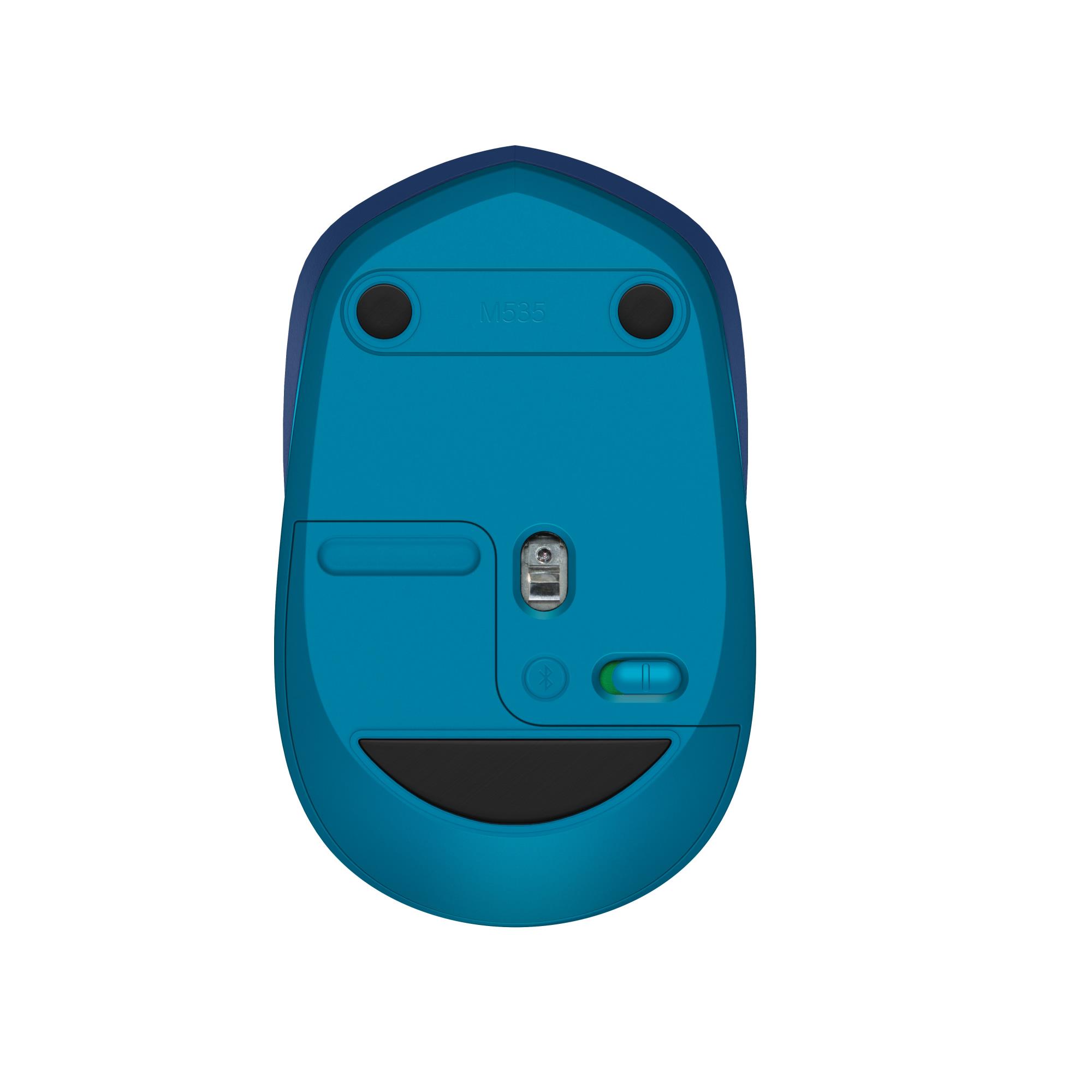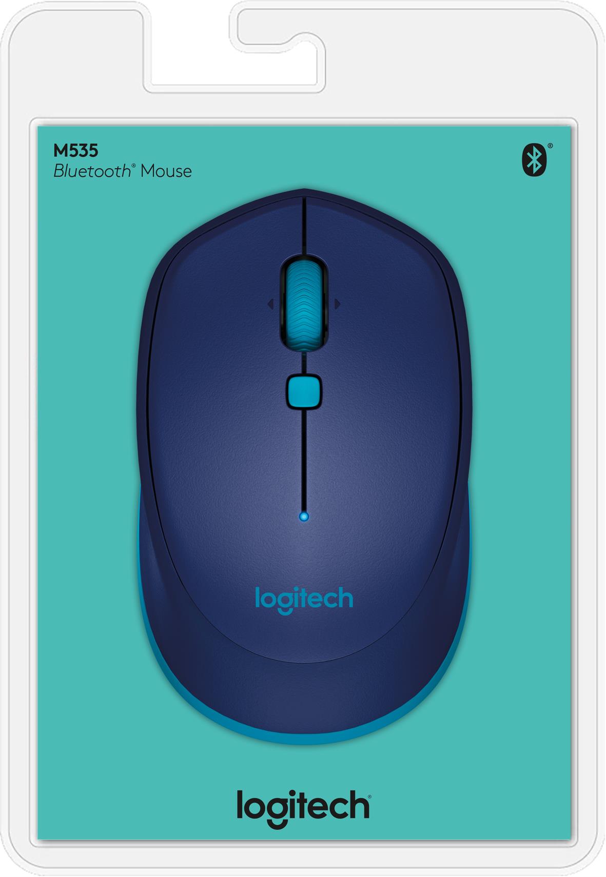 Logitech M535 Bluetooth Mouse. Form factor: Ambidextrous. Movement detection technology: Optical, Device interface: Bluetooth, Movement resolution: 1000 DPI, Buttons type: Pressed buttons, Buttons quantity: 3, Scroll type: Wheel. Power source: Batteries. Works on any surface. Product colour: Blue