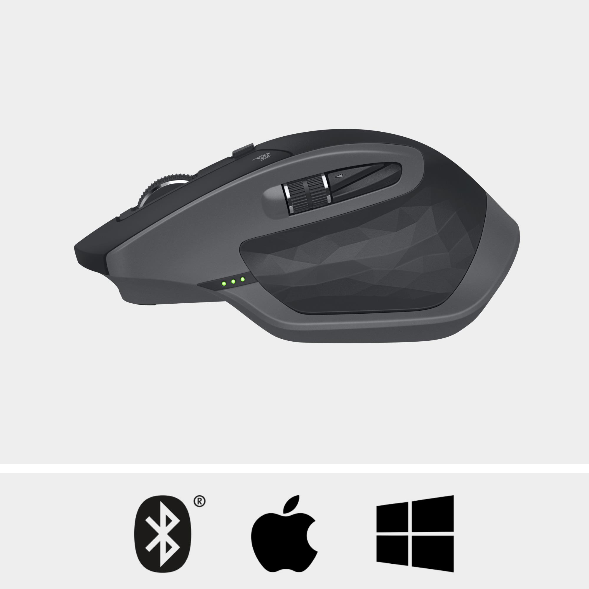 Logitech MX Master 2S Wireless Mouse. Form factor: Right-hand. Movement detection technology: Laser, Device interface: RF Wireless + Bluetooth, Movement resolution: 1000 DPI, Buttons type: Pressed buttons, Buttons quantity: 7, Scroll type: Wheel. Power source: Batteries. Product colour: Graphite