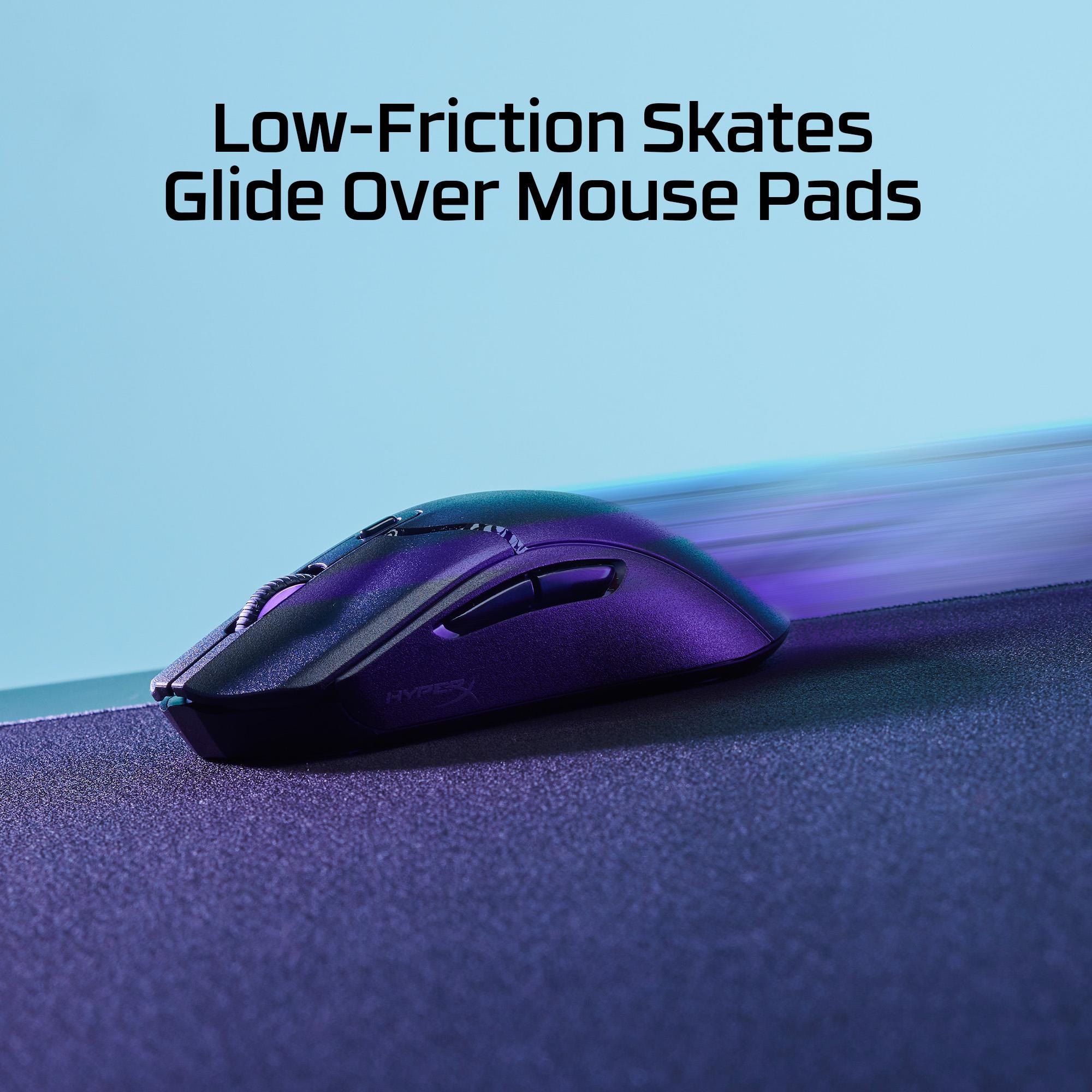 - Be confident in every movement as the HyperX low-friction skates glide over mouse pads. Move quickly from target to target with minimal interference.