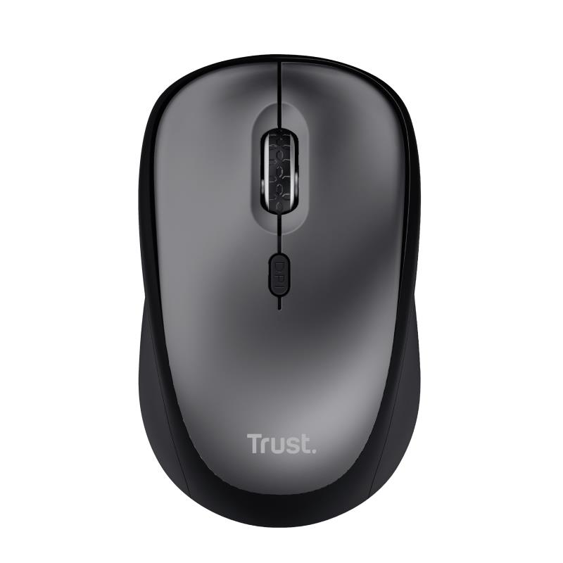 Trust Yvi+ Silent Wireless Mouse. Form factor: Right-hand. Movement detection technology: Optical, Device interface: RF Wireless, Movement resolution: 1600 DPI, Buttons type: Pressed buttons, Buttons quantity: 4, Scroll type: Wheel. Power source: Batteries. Product colour: Black
