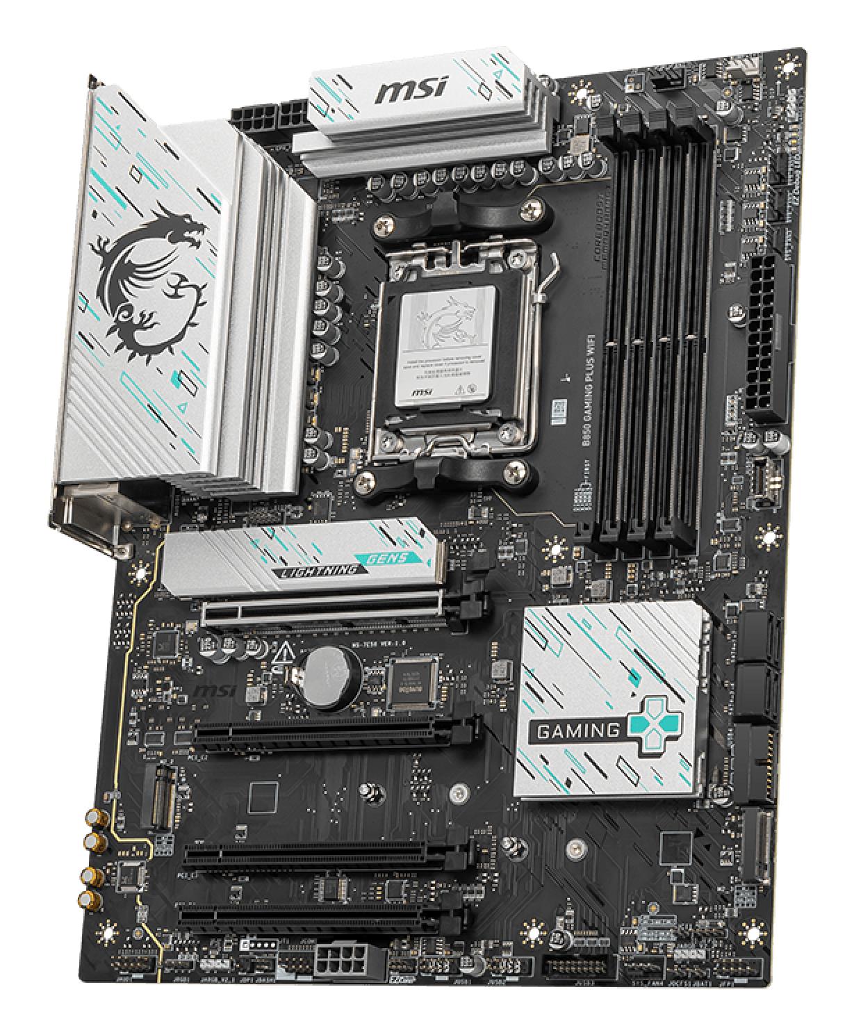The B850 GAMING PLUS WIFI is crafted to offer extensive connectivity, versatile tools, and a premium Wi-Fi solution for gamers seeking a comprehensive experience. Featuring full-speed Wi-Fi 7, 5G LAN, PCIe 5.0 solution, Supplemental PCIe Power and exclusive EZ DIY features, it is ready for 24/7 non-stop gaming optimized for AMD Ryzen™ 9000 series processors.