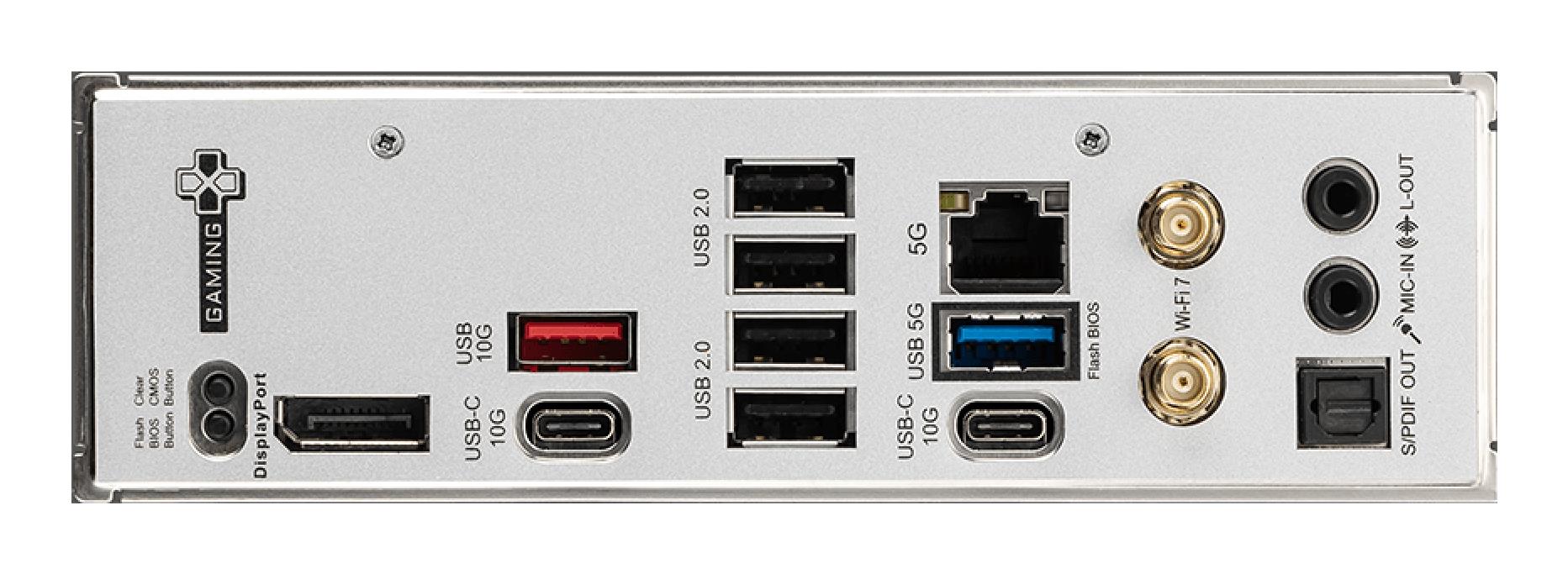 MSI AMD B850 SAM5 ATX Memory DDR5 Memory slots 4 4x PCI-Express 16x 3x M.2 1x Display Port 1x Audio-In 1x Audio-Out 1x Microphone 4x USB 2.0 2x USB 3.2 2x USB-C 1x Optical S/PDIF 1x RJ45 B850PLUSWIFI