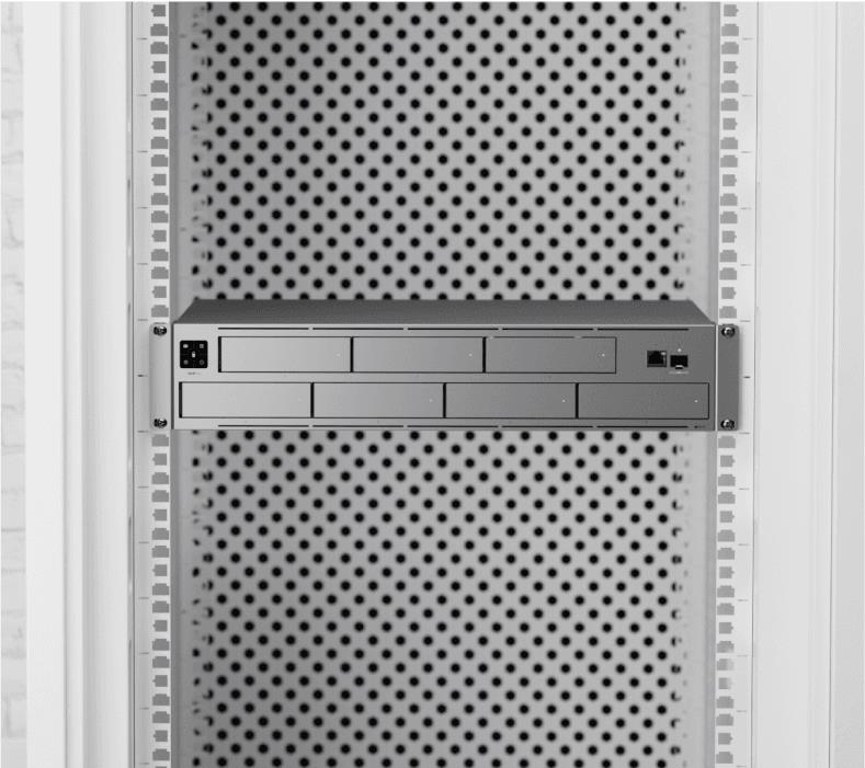 A 2U-sized video recorder with (7) 2.5/3.5" HDD bays that can provide up to 60 days of storage for (20) 4K cameras or (60) Full HD cameras.