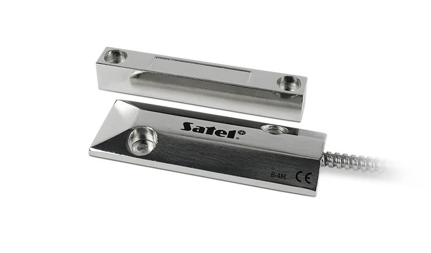 Magnetic detectors are basic elements of a perimeter protection system. Medium-size  B-4M tight side magnetic detectors in a metal housing are designed for surface mounting. The metal screen protects the wiring against damage, which makes these detectors a perfect solution for locations particularly vulnerable to sabotage attempts or mechanical exposure. These detectors are screwed to a surface and provide an ideal solution for garage gate installation.
