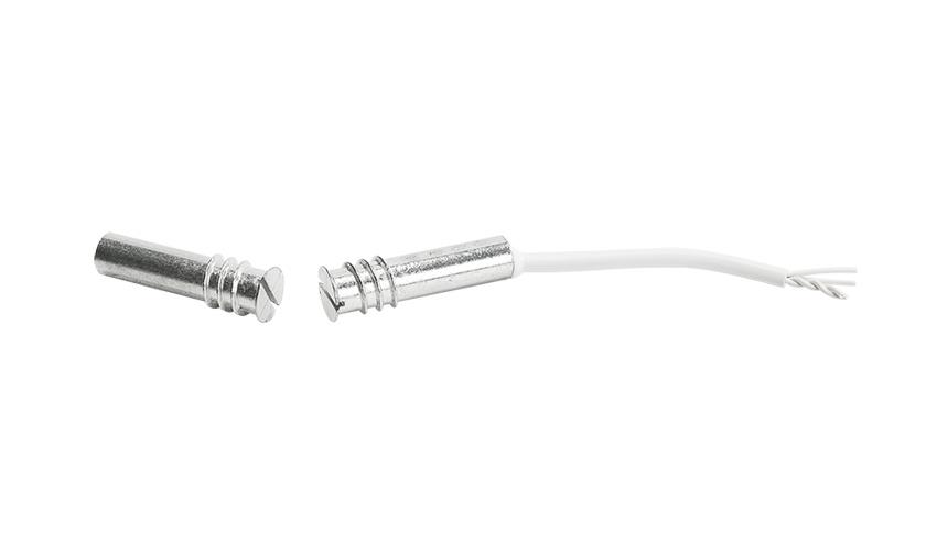 Magnetic contact detectors belong to the essential devices of perimeter protection. They are used to protect doors, windows, etc., by triggering alarm when they are open. The S-3 detector is designed for flush-mounting, i.e. its elements are to be put in place by screwing their aluminum enclosures into properly prepared holes in wooden or plastic door frame, window frame, etc. S-3 consists of two watertight parts: the reed switch (magnetic) sensor and the magnet, whose faces should contact each other. Moving one part away from the other breaks the sensor circuit, which is indicated as a violation. Additionally, the detector is provided with a tamper loop.