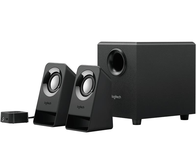 This compact 2.1 speaker system delivers clear audio and enhanced bass via a 3.5mm connection. Easily access power, volume and the headphone jack using the wired control pod. Enjoy a full audio experience in a small form factor.