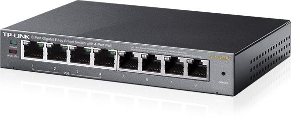 The TL-SG108PE is an 8-port Gigabit Easy Smart Switch with 4 PoE ports, represents a powerful upgrade from an unmanaged switch. It is designed specically for small businesses that require simple network management and PoE function. The TL-SG108PE can connect and power up to four PoE devices, such as wireless access points (APs), IP cameras, and IP phones. Through its web-based user interface and management utility, the TL-SG108PE offers a variety of useful features, including network monitoring, trafc prioritization, and enhanced QoS. Additionally, with port-based, tag-based and MTU VLAN, TL-SG108PE can improve security and meet more network segmentation requirements.