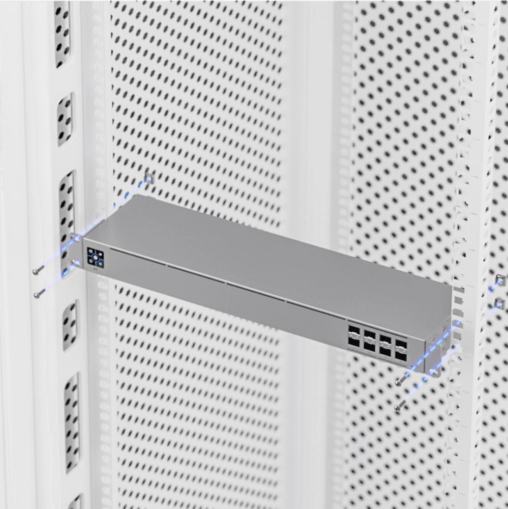 The UniFi Aggregation Switch is a managed Layer 2 switch with eight 10G SFP+ ports. Featuring a compact 4.7" depth and fanless design, it supports high-bandwidth links to provide link aggregation for higher capacity and increased availability.