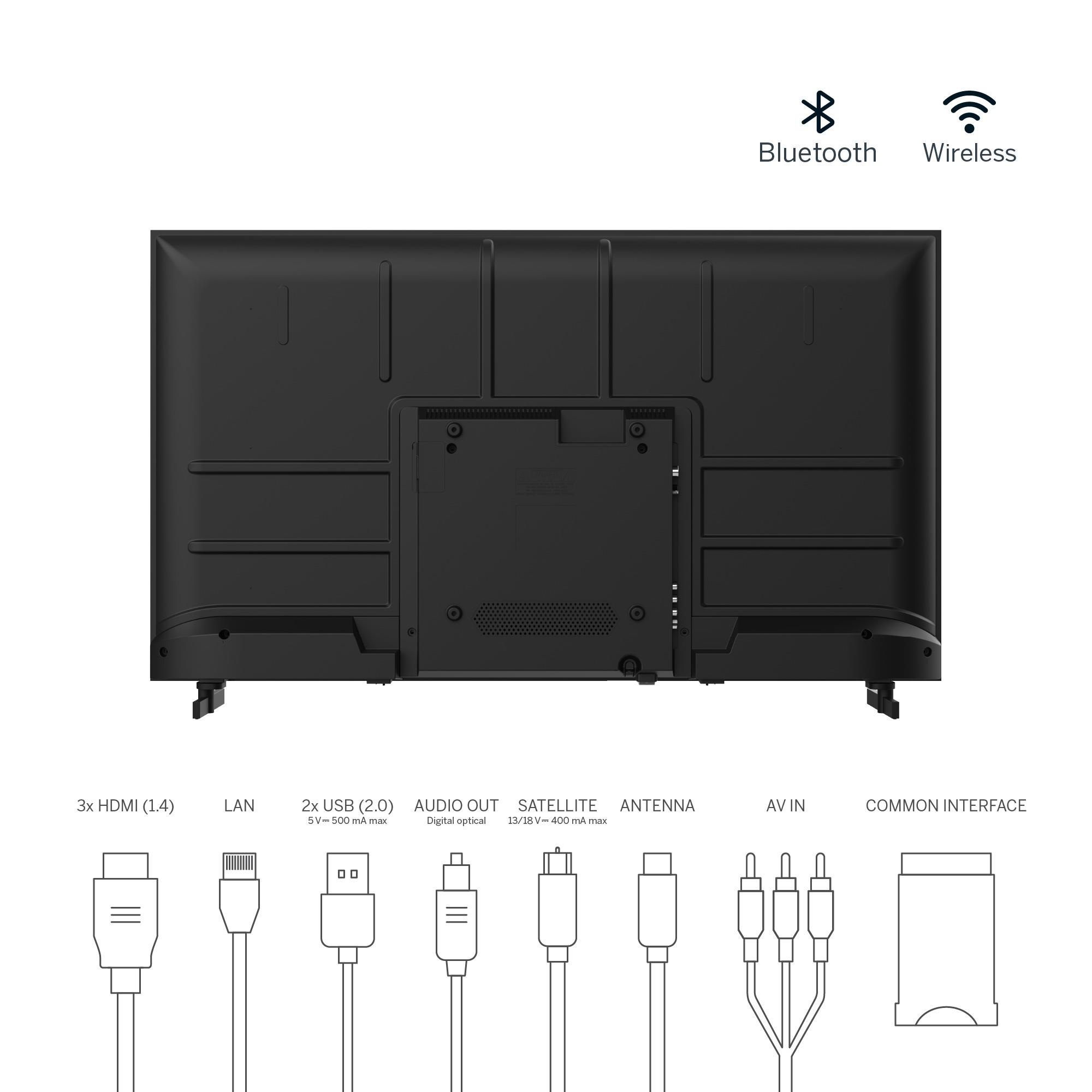 | Summary | Thomson G63 Series 40FG2S14. Display diagonal: 101.6 cm (40"), Display resolution: 1920 x 1080 pixels, HD type: Full HD, Display technology: LED, Screen shape: Flat, LED backlighting type: Direct-LED. Smart TV. Native aspect ratio: 16:9. Digital signal format system: DVB-C, DVB-S, DVB-S2, DVB-T, DVB-T2. Wi-Fi, Ethernet LAN. Product colour: Black |